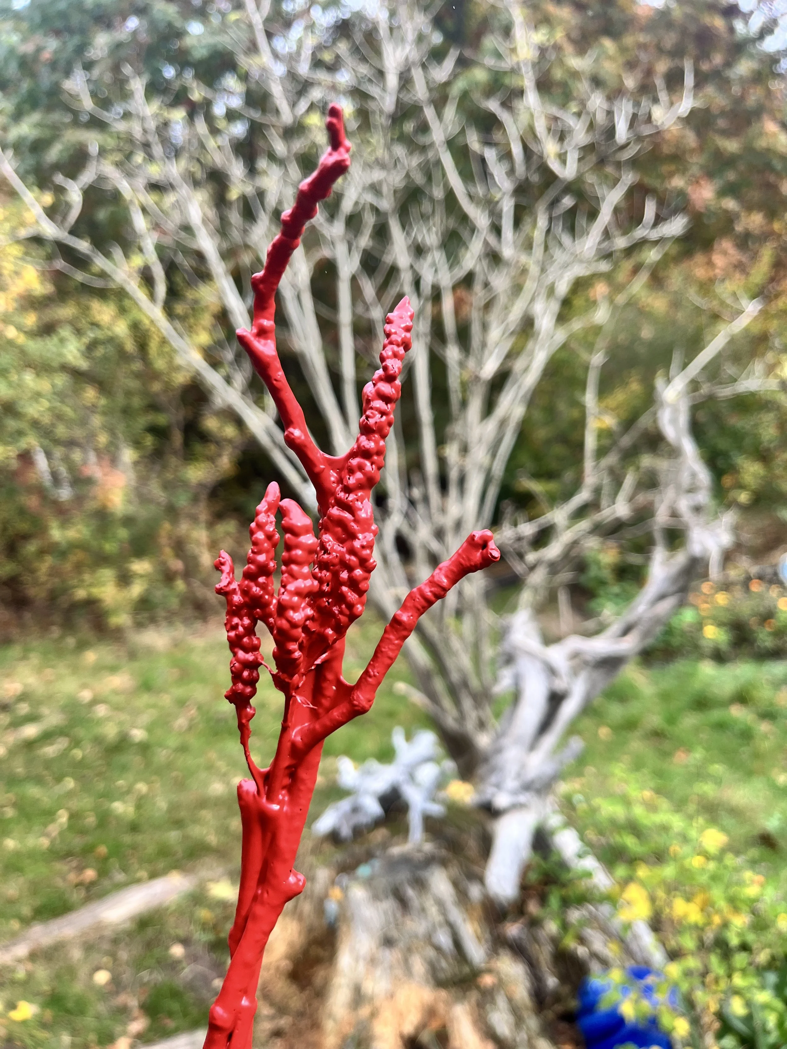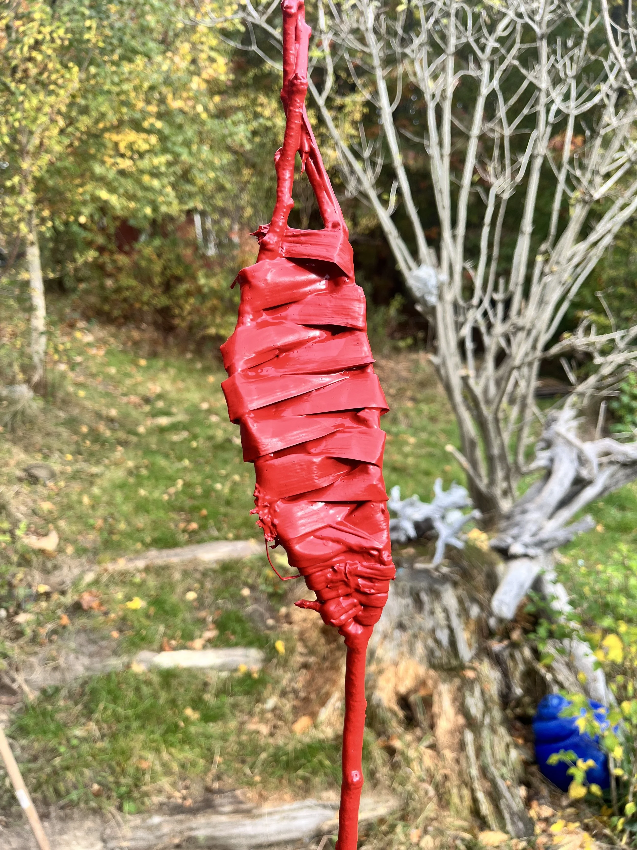 This project grew out of my need to spend time with plants and to understand them through touch and transformation. Over the last summers, the practice became a way of learning nature’s forms and behaviors, how different flowers dry, how long they last, and how this changes their afterlife. I dip plants into paint as a way of preserving them, almost like mummifying them, creating a skin that keeps their shape while the living body slowly dries underneath. In this way, I take the plant out of its natural cycle at its peak, freezing it in a moment of beauty. It feels similar to how humans try to control life and death, wanting things to stay forever, refusing decay. When we pick flowers and place them in vases, we already remove them from their ecosystem and interrupt their ability to reproduce, only to admire them.